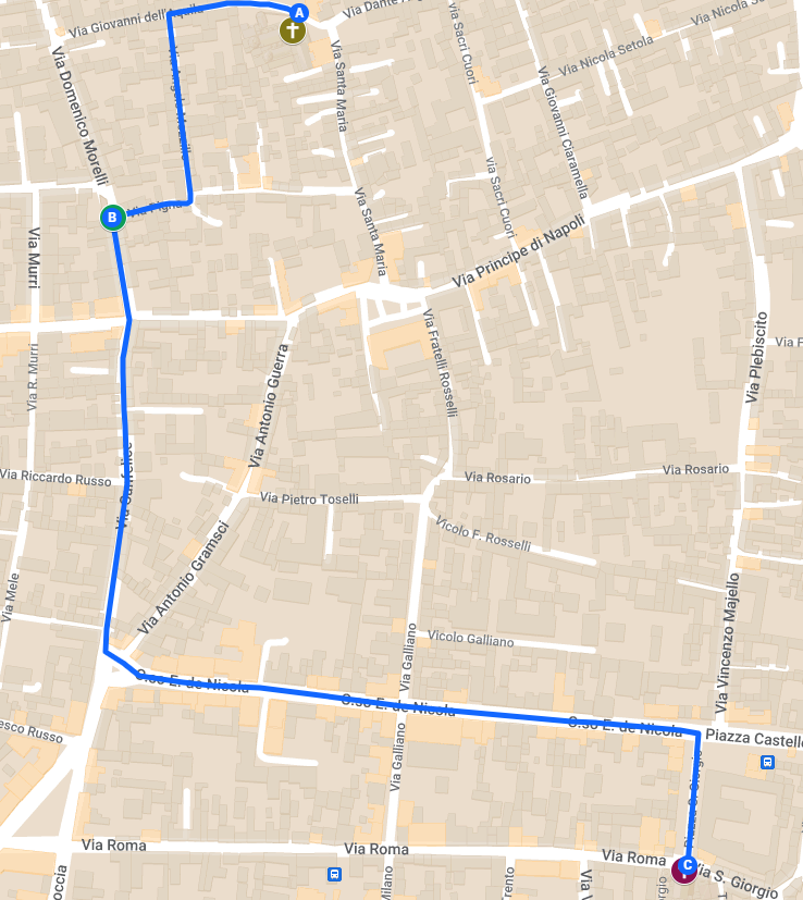Il nostro itinerario continua per l’angolo tra via Pigna e via Domenico Morelli, dove si incontra una deliziosa edicola votiva dedicata alla Madonna delle Grazie. Qui, su un muro quasi nascosto tra le abitazioni, si conserva un affresco attribuito proprio a Mozzillo. Nonostante il trascorrere dei secoli e i segni del tempo, l’opera mantiene una forza semplice e commovente, testimoniando la fede popolare che l’ha resa nei decenni un punto di preghiera discreto ma costante.